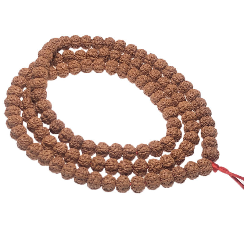 Esta pulsera sagrada está hecha de 108 cuentas de Rudraksha de cinco pétalos, cada uno con un diseño único en un patrón de panal. Venerado en las prácticas espirituales, Cuentas de Rudraksha Se conocen como las "Lágrimas de Shiva" y se cree que ofrecen poderosa protección, paz y crecimiento espiritual. El diseño de cinco pétalos simboliza el equilibrio de los cinco elementos, representando... armonía, fuerza y alineación espiritual.
