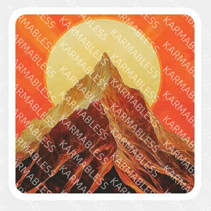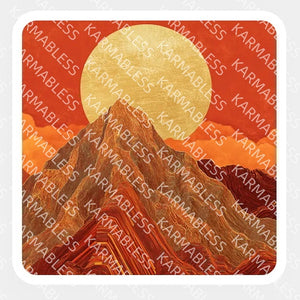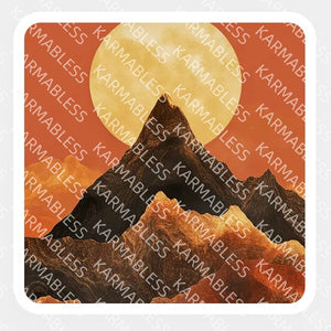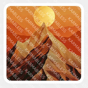 Las imponentes montañas se alzan hacia un sol brillante, irradiando calidez y poder, envueltas en los vibrantes tonos naranja y rojo del cielo. Esta escena captura la fuerza, la estabilidad y la pasión de la Tierra y el Fuego, simbolizando la ambición y la transformación.