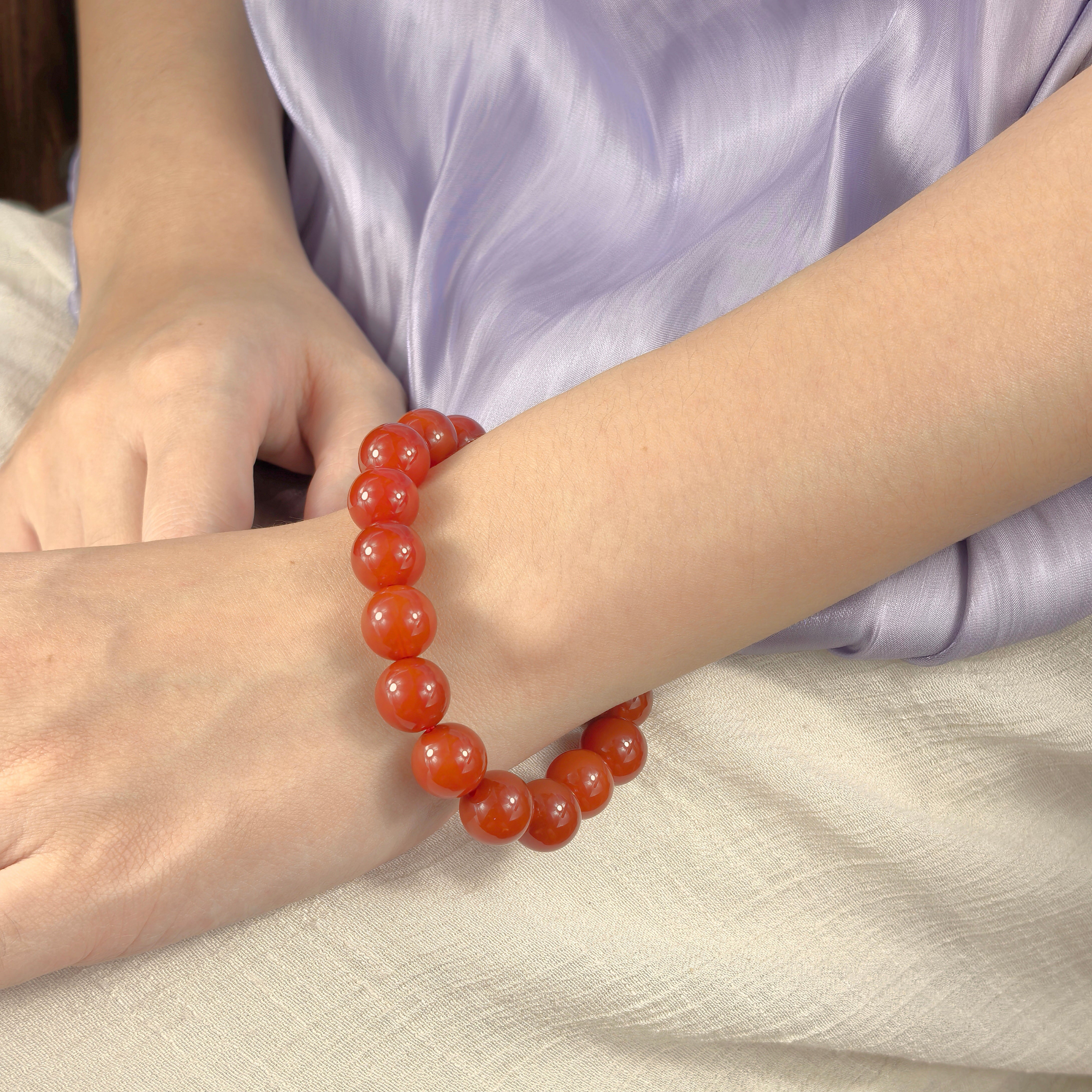 El ágata roja es conocida por su delicado y hermoso color, que puede hacer que la piel luzca más blanca y refinada al usarla. Desde la antigüedad, los eruditos han considerado el ágata como el "tercer ojo" entre las piedras preciosas, simbolizando el amor amistoso y aliviando el estrés emocional. El ágata roja es de un rojo intenso, pero su tono rojo es único. No es tan brillante como el rojo común y a veces presenta un color óxido.