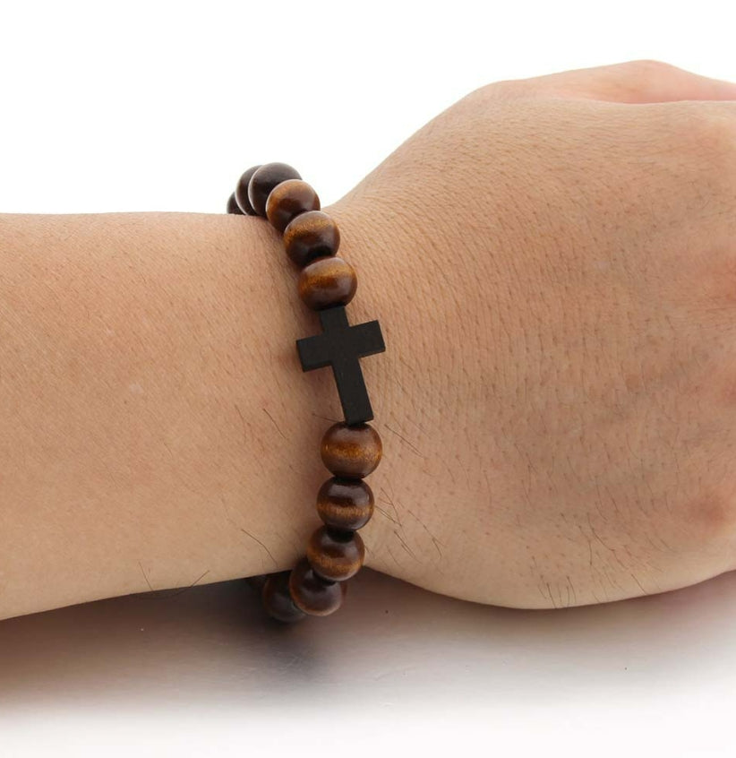Una elegante cruz de madera sirve de pieza central, simbolizando la fe y la serenidad, integrada a la perfección en el diseño. Con una banda elástica, garantiza un ajuste cómodo y ceñido para cualquier tamaño de muñeca.