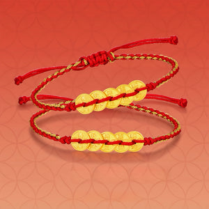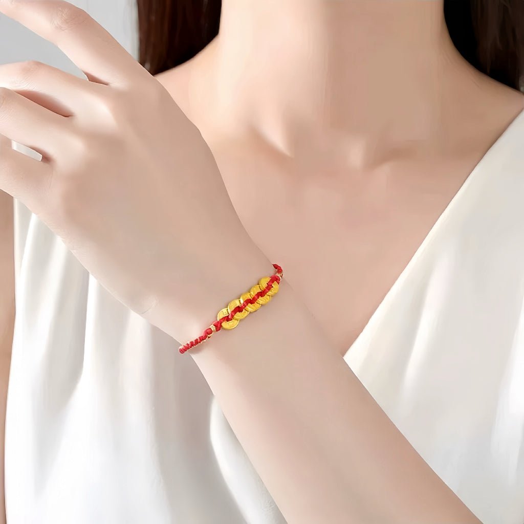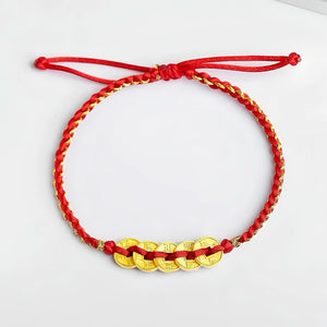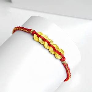 Pulsera de cuerda de color rojo de color de oro en anticipación de cinco bendiciones
