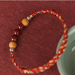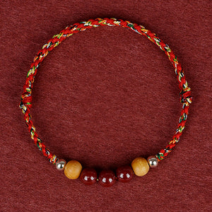 Guardián de cinco elementos Jasper y pulsera de cuerda roja de madera