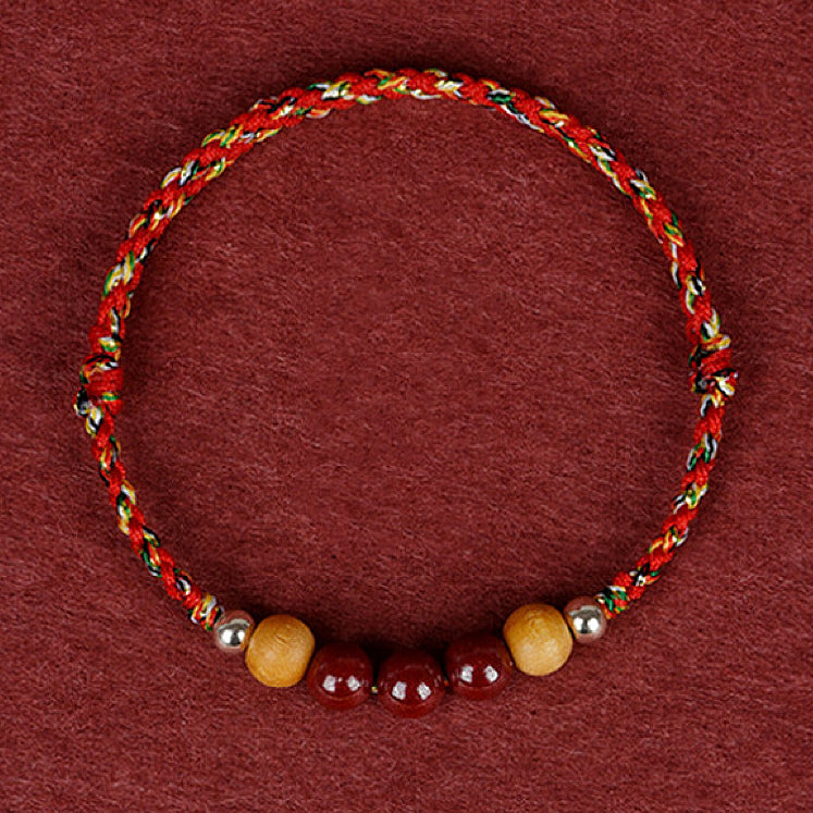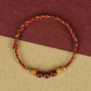 Abrace la armonía holística con esta pulsera guardiana de cinco elementos, meticulosamente anudada a mano en un cordón carmesí vibrante, un emblema oriental duradero de vitalidad y protección.