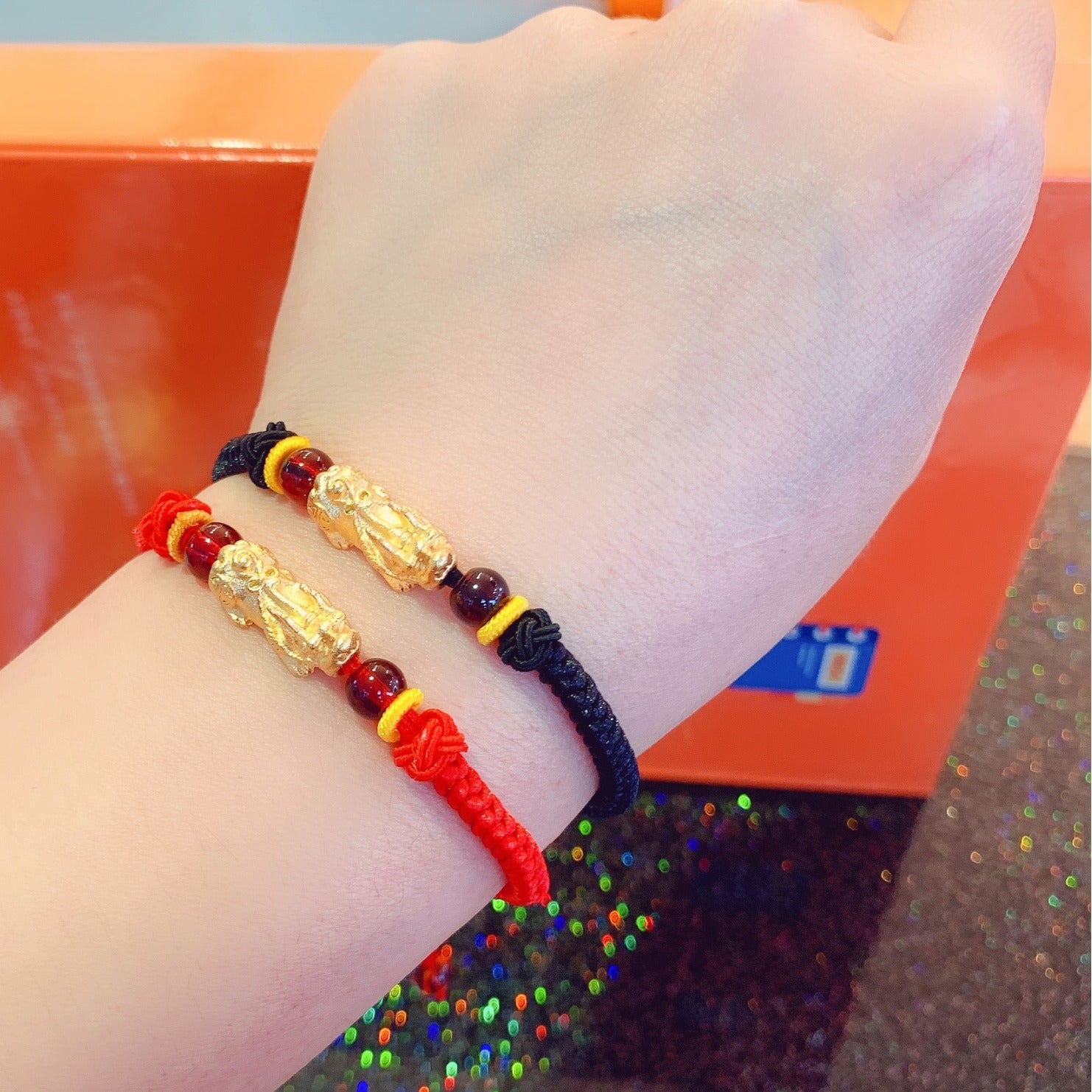 Cordón rojo llamativo: La pulsera está diseñada con un cordón rojo brillante, un color tradicionalmente asociado con la buena suerte, la felicidad y la protección en la cultura china. Se cree que el rojo aumenta la energía y atrae fuerzas positivas, lo que la convierte en un hermoso talismán para tu muñeca.