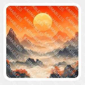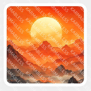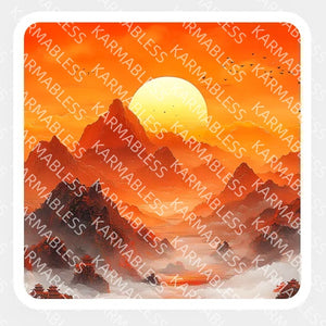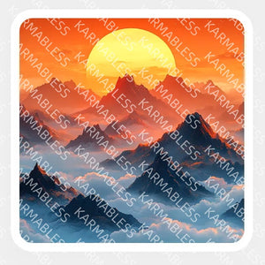 Disfrute del resplandor radiante de un sol dorado que se eleva sobre majestuosas montañas, donde el cielo ardiente se fusiona con los picos enraizados de abajo.