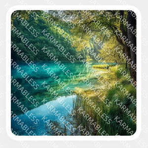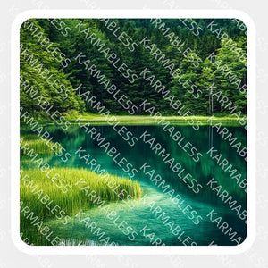 Adéntrese en un mundo tranquilo donde los frondosos árboles se reflejan suavemente en las tranquilas aguas, creando una escena tranquila de perfecto equilibrio.