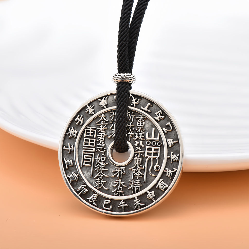 This is not just a necklace; it is a powerful, wearable Taoist talisman, a "charm coin" (花钱) designed for ultimate spiritual protection. It invokes the authority of ancient deities and the fundamental order of the cosmos to shield its wearer from all forms of harm.