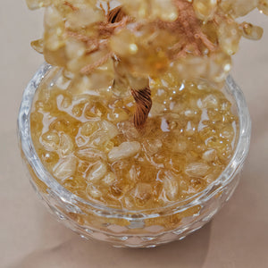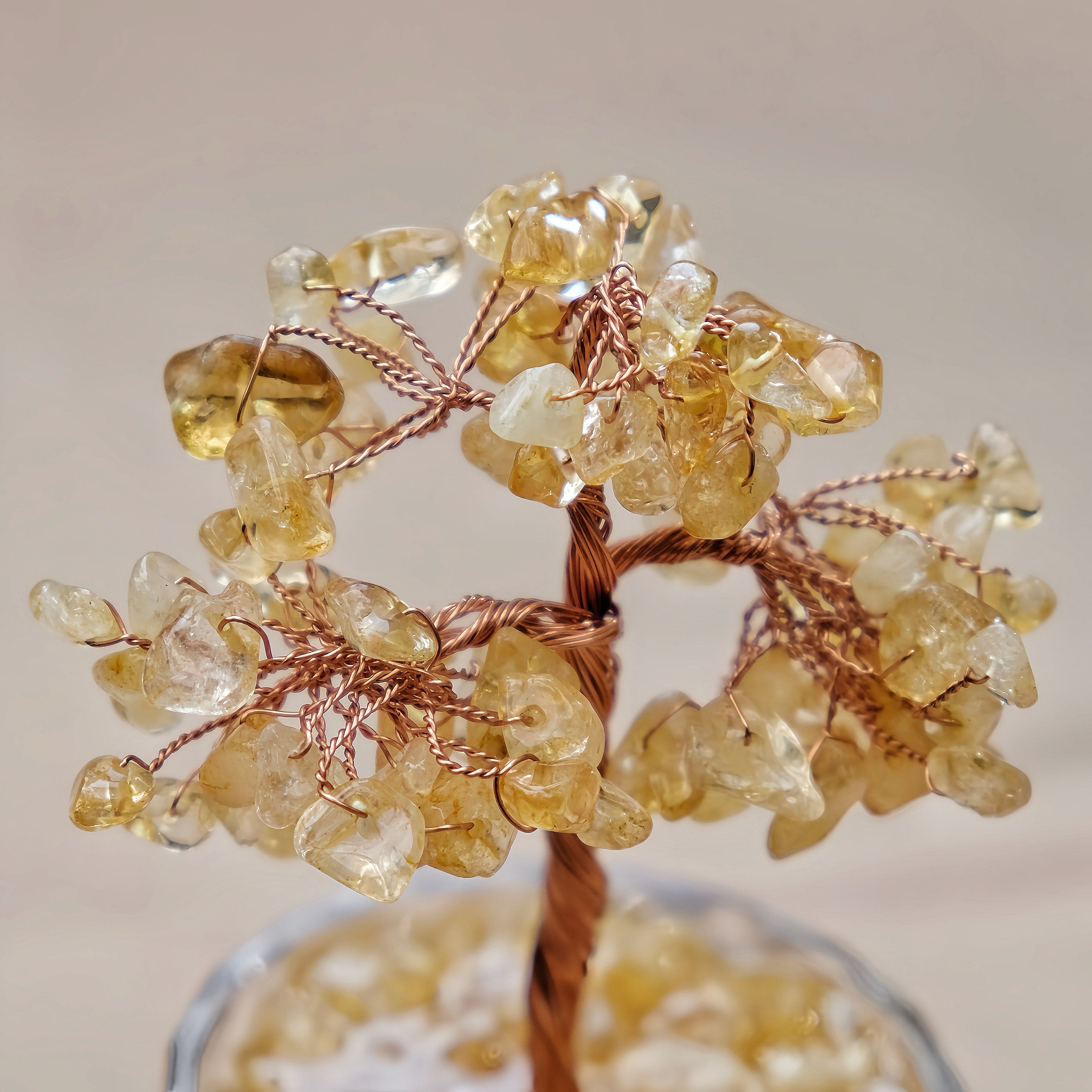 Sebbene di piccole dimensioni, questo albero racchiude le potenti proprietà della citrina, una pietra nota per attrarre ricchezza, successo e amplificare le intenzioni positive.