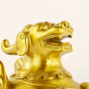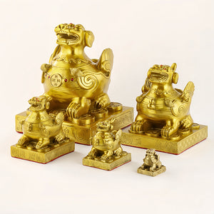 Ottieni prosperità e scaccia la sfortuna con la statuetta Pixiu in ottone Feng Shui del guardiano propizio, una maestosa fusione di simbolismo celeste e maestria artigianale.