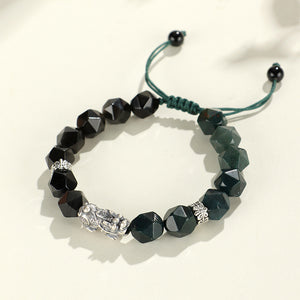 Obsidiano sfaccettato e muschio Agato 999 Silver Feng Shui Pixiu Bracciale