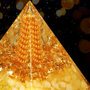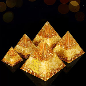 • The Pyramid Shape: A timeless symbol of focus and ascension. The wide base provides stability while the apex directs your goals and intentions toward the universe