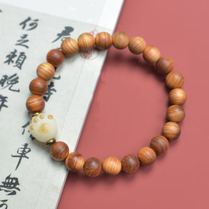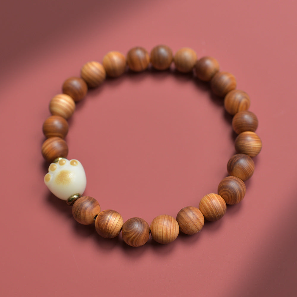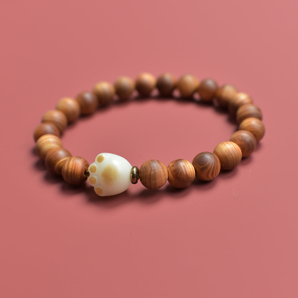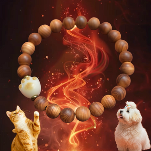 Realizzato a mano con perline di legno di cipresso di scogliera terrosa, venerate per la loro energia di messa a terra e gli antichi legami con la protezione spirituale, questo braccialetto presenta un delicato ciondolo a forma di zampa di gatto al centro, a simboleggiare il "contratto dell'anima" senza tempo che ti lega allo spirito del tuo animale domestico, che camminino al tuo fianco o nell'aldilà. Ogni perla è infusa con la resilienza del cipresso, un albero noto per la sua capacità di unire il mondo fisico a quello spirituale, mentre il motivo a zampa funge da promemoria tattile della presenza eterna del tuo animale domestico.