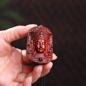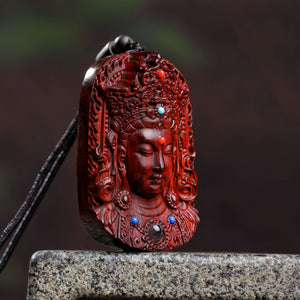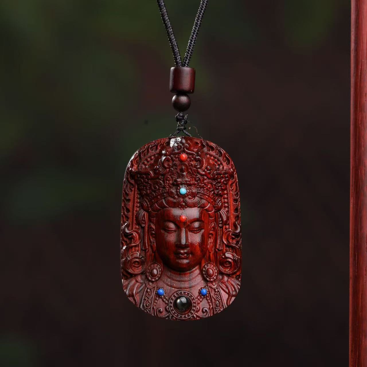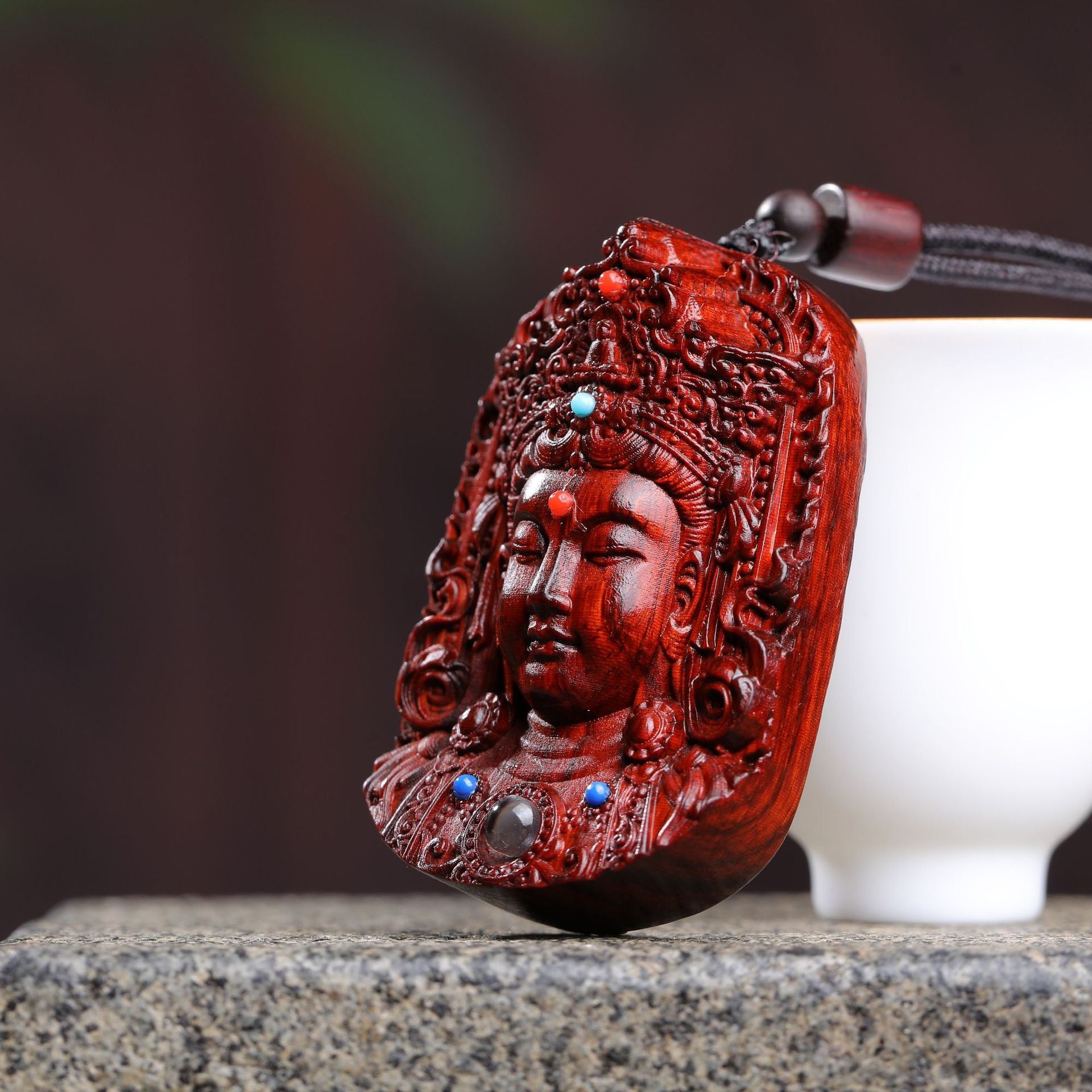 This exquisite pendant is meticulously hand-carved from rare Red Sandalwood (Zitan wood), a material revered for its spiritual significance and deep connection to Buddhist traditions. The carving depicts Guanyin, the Bodhisattva of Compassion, renowned for her mercy and benevolence. Wearing this pendant is a powerful way to carry her peaceful energy with you. It serves as a reminder to cultivate compassion, inner peace, and kindness in your daily life, offering a sense of calm and protection.