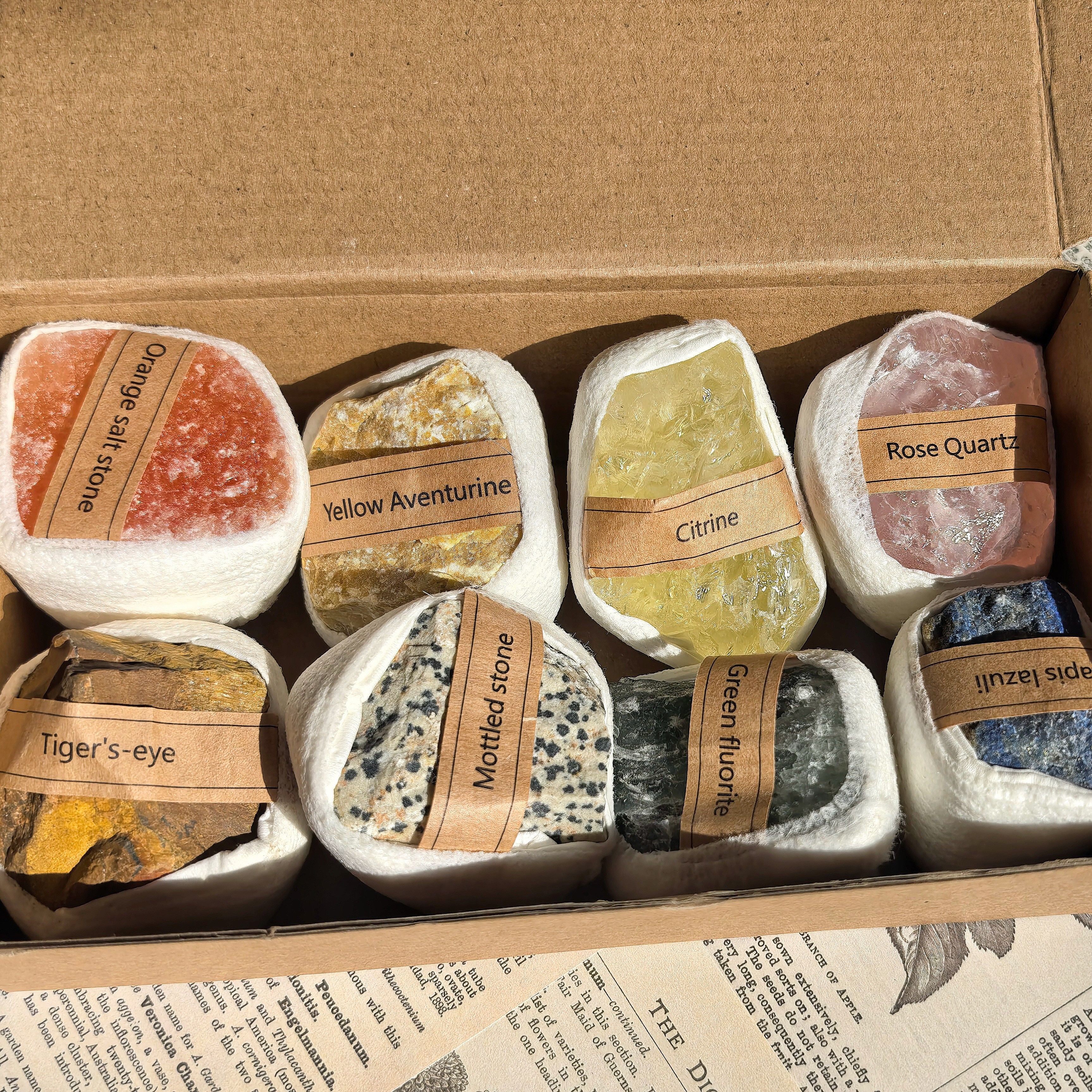 Intraprendete un viaggio verso l'equilibrio, la guarigione e la tranquillità con il set di cristalli curativi Serenity Spectrum, una collezione di 8 cristalli pensata per allineare la vostra energia e promuovere il benessere. Ogni cristallo, accuratamente selezionato, conferisce la sua energia unica a questo vibrante set: