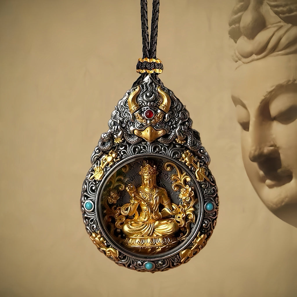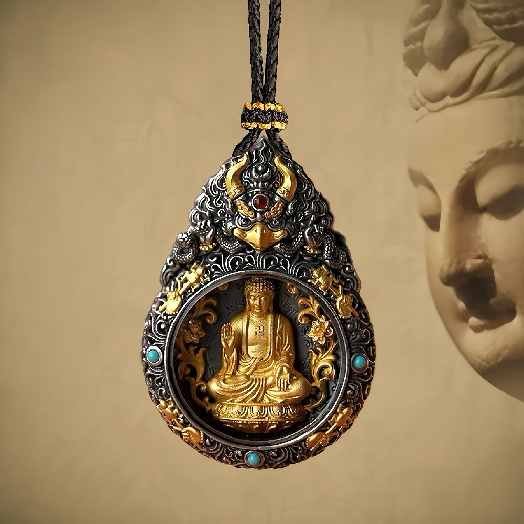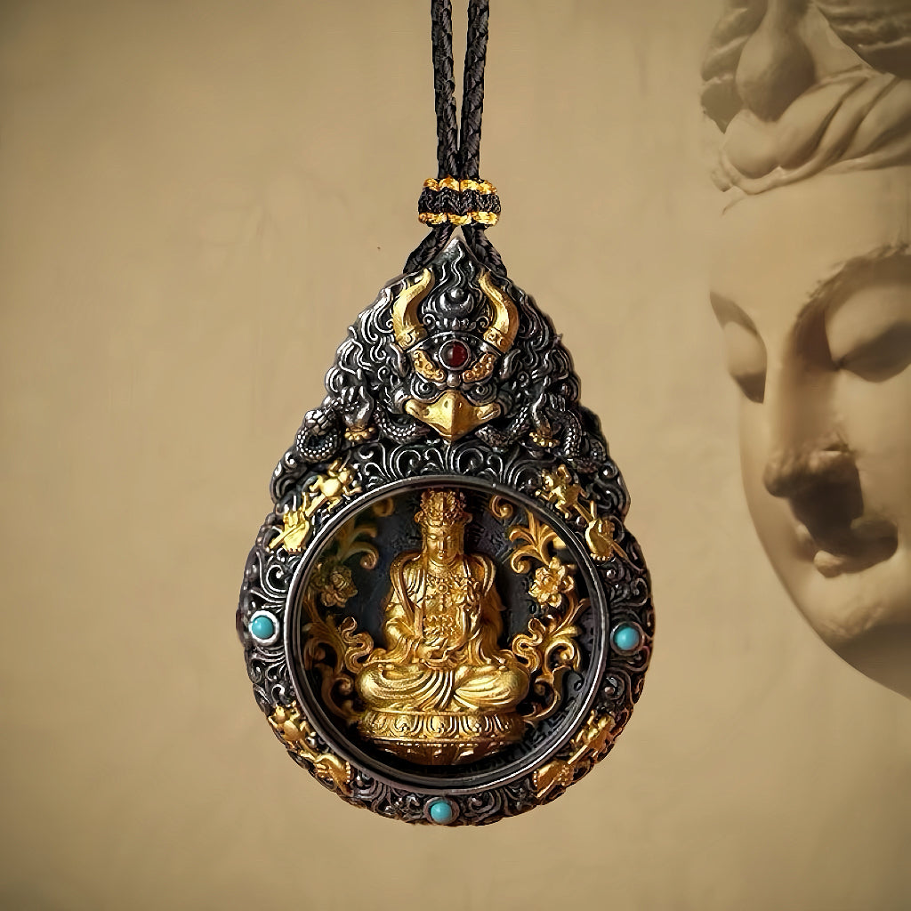 - Dual-Layered Defense: The intricate frame provides a second layer of powerful protection. The fierce, mythical beast at the top (a Garuda or similar heavenly guardian) actively repels evil, while the inlaid turquoise stones—sacred in Tibetan tradition—promote healing, wisdom, and spiritual clarity.