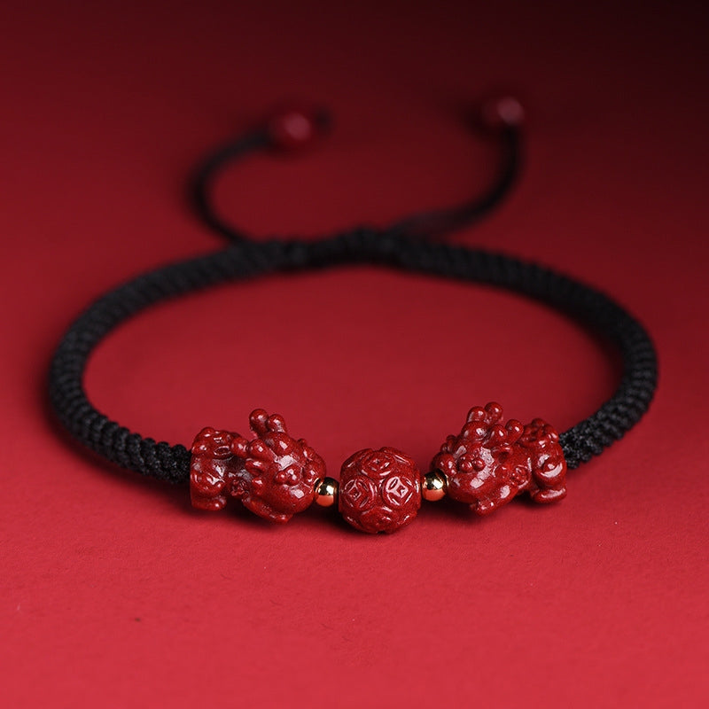 Vibrant Cinnabar Beads: This bracelet features beautiful cinnabar beads, which are known for their rich red color and intricate carvings. Cinnabar is historically used to attract wealth, abundance, and good luck, making it a perfect choice for enhancing your personal energy.