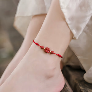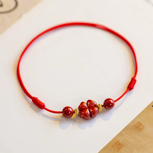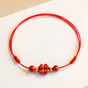 Cinnabar Four-Leaf Clover Lucky Anklet Red String Bracelet