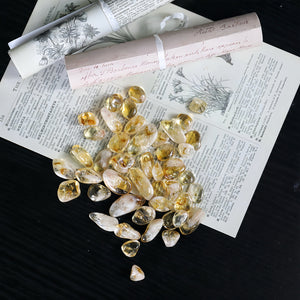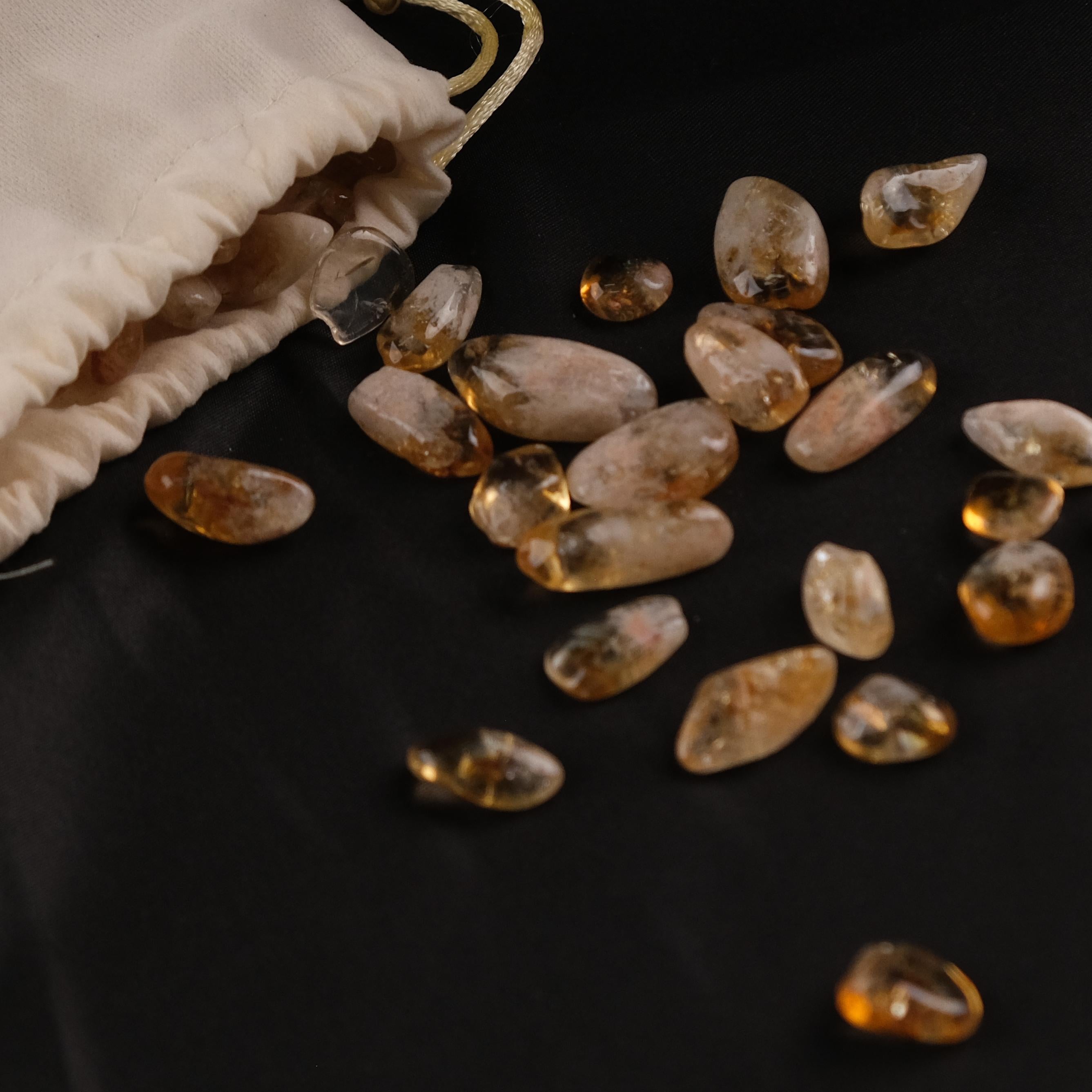 Bask in the warm, golden glow of Citrine Chips, known as the "Stone of Abundance."