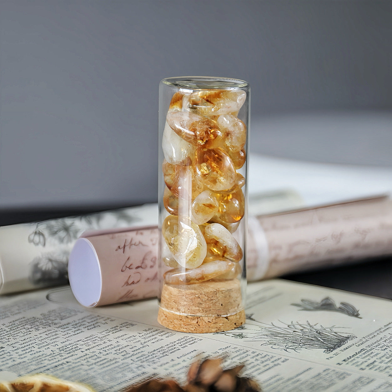 Carry the vibrant energy of abundance with the Citrine Wishing Vial. Known as the "Stone of Success," citrine amplifies your intentions for wealth, prosperity, and joy.