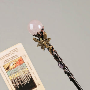 Crowned with a delicate fairy and infused with the energy of magical crystals, this wand radiates light, beauty, and wonder. It is designed to enhance intuitive abilities, open the heart to joy, and invite positive energy into your life.