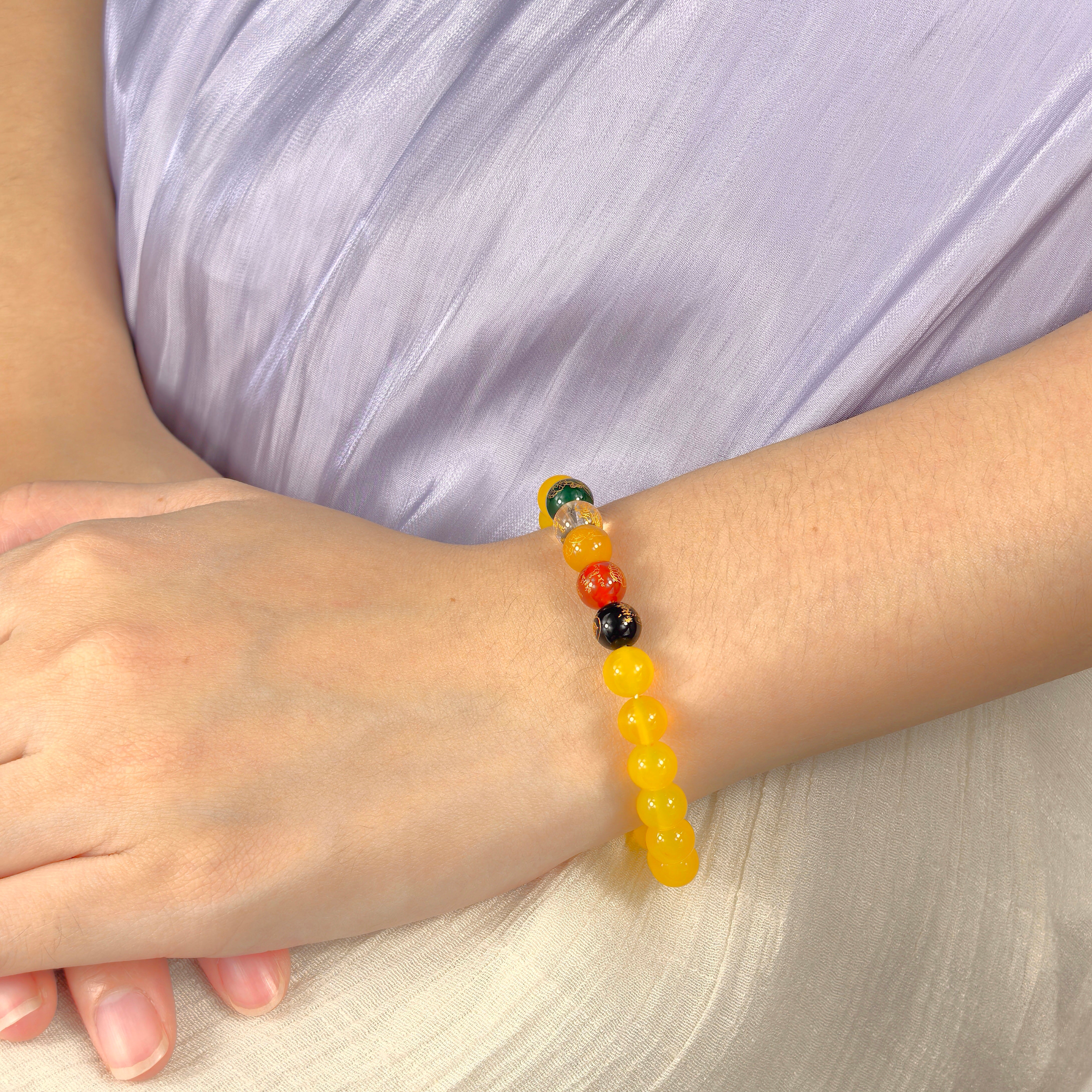 The five-colored agate represents the Five Wealth Gods: Yellow Wealth God, White Wealth God, Black Wealth God, Red Wealth God, and Green Wealth God. It symbolizes abundant wealth, attracting and gathering fortune, and bringing good luck and blessings. The five-colored Wealth Gods can bring you prosperity and good fortune.