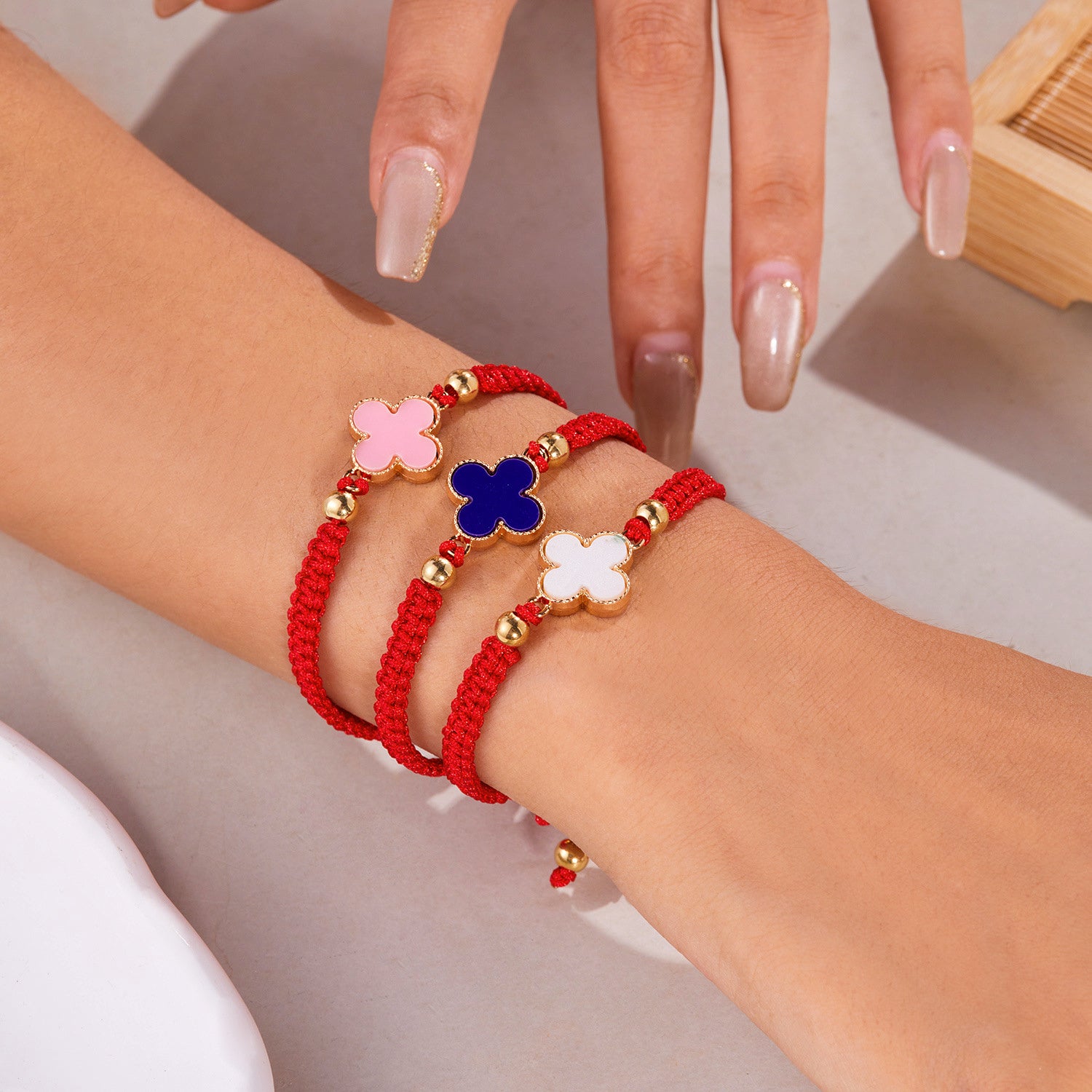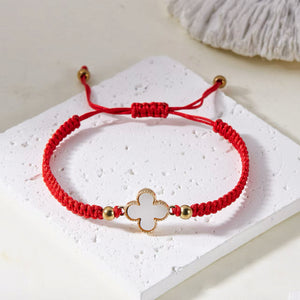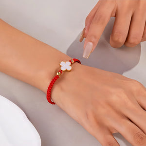 Embrace celestial romance with this Ivory Clover Bracelet, meticulously hand-braided in vibrant crimson thread—a symbol of passionate devotion across cultures.