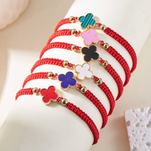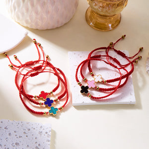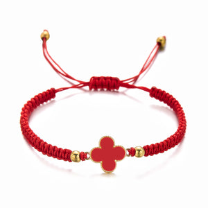 Embrace the poetry of destiny with this Midnight Clover Bracelet, meticulously hand-braided in vibrant crimson thread—a universal emblem of passion and protection.