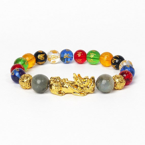 Multi-Color Crystal Feng Shui Pixiu Six Words Mantra Bracelet