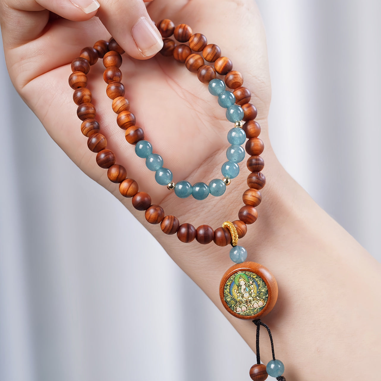 Patina Guanyin Cliff Cypress Mala Prayer Beads Bracelet