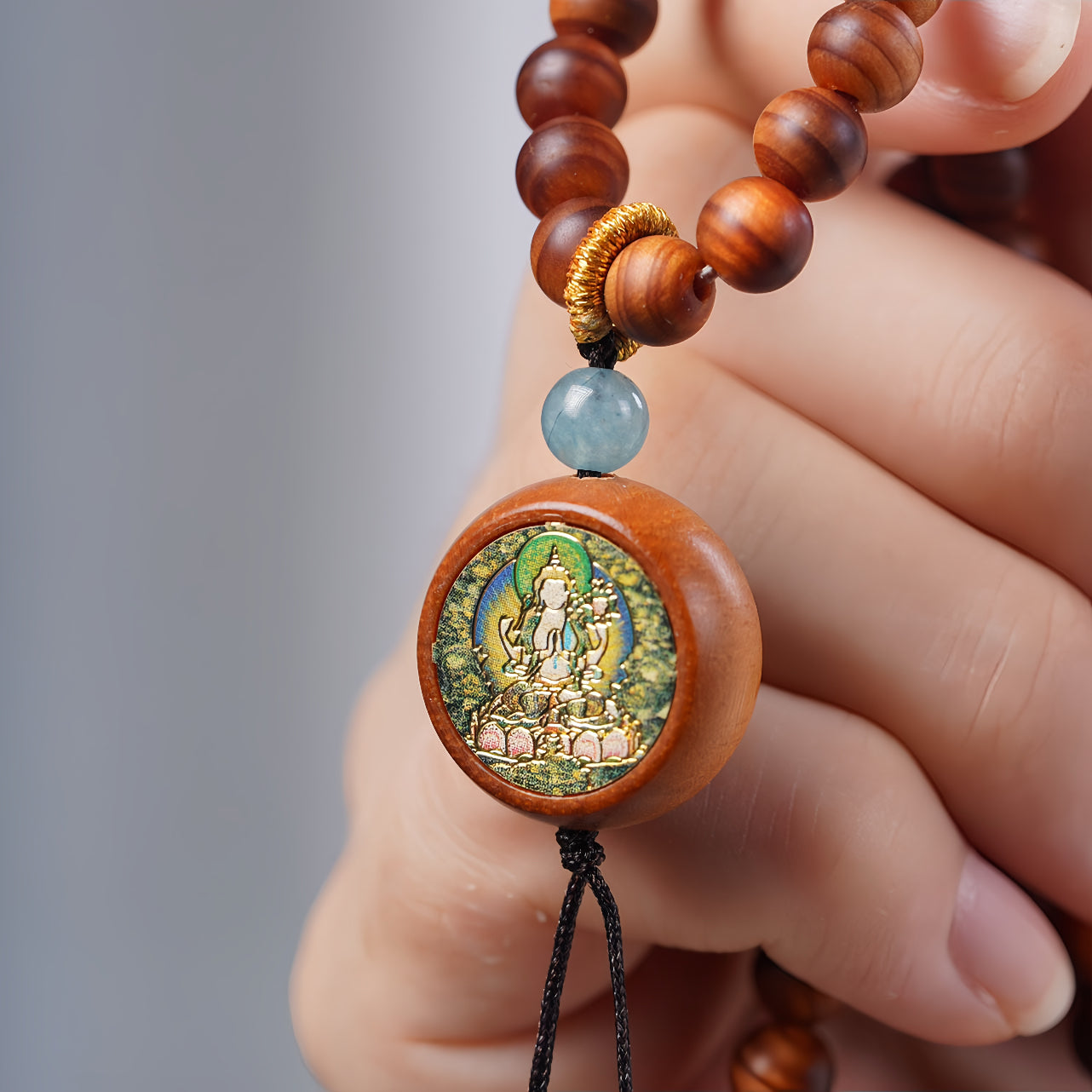Embody timeless tranquility and mindful intention with the Patina Guanyin Cliff Cypress Mala Prayer Beads Bracelet, a sacred fusion of nature’s artistry and spiritual symbolism.
