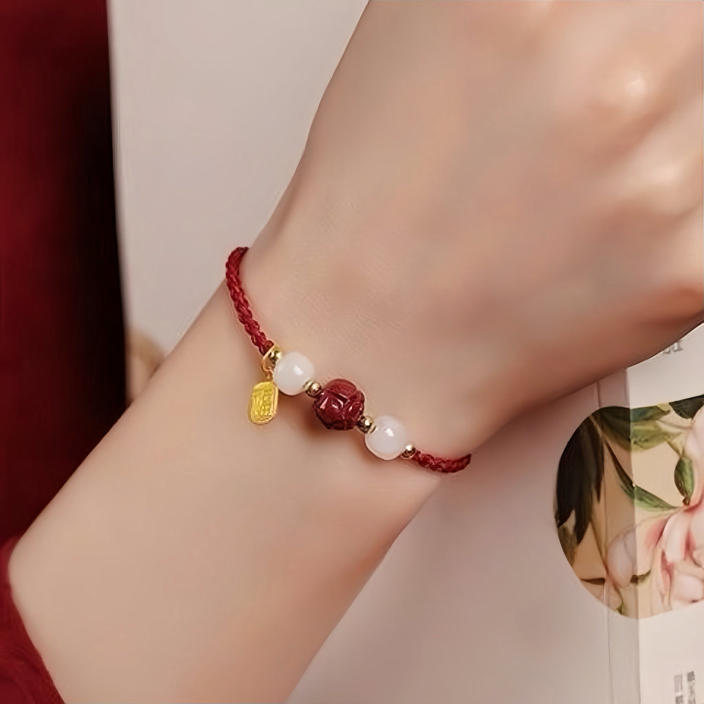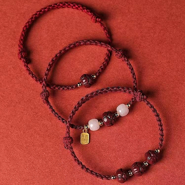Awaken abundance with this Prosperity Lotus Fu Charm Bracelet, handwoven in vibrant crimson cord for timeless elegance.