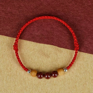 A: Trace the peach wood while visualizing safety, or hold jasper beads during stress. The red thread keeps intentions "alive" through movement.