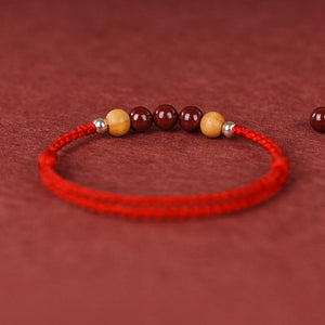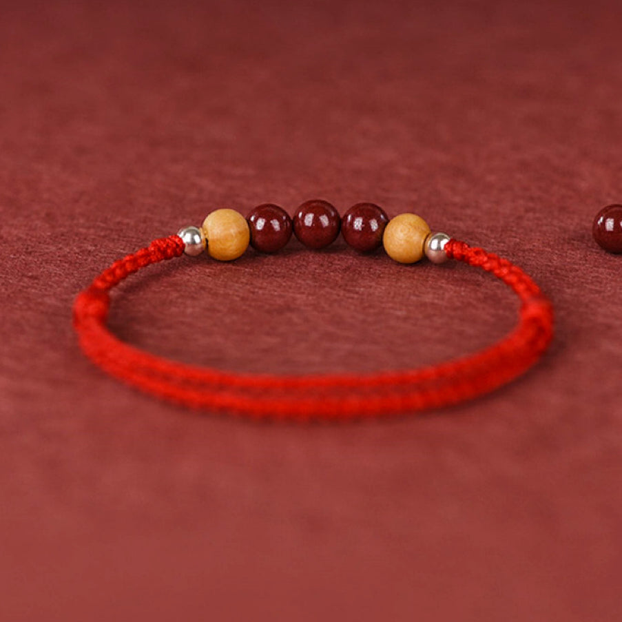 Touch tranquil tradition with this Sacred Peach Wood & Jasper Harmony Bracelet, woven from vibrant crimson thread—an enduring symbol of vitality across cultures.