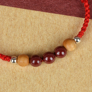 Sacred Peach Wood & Jasper Harmony Red String Bracelet