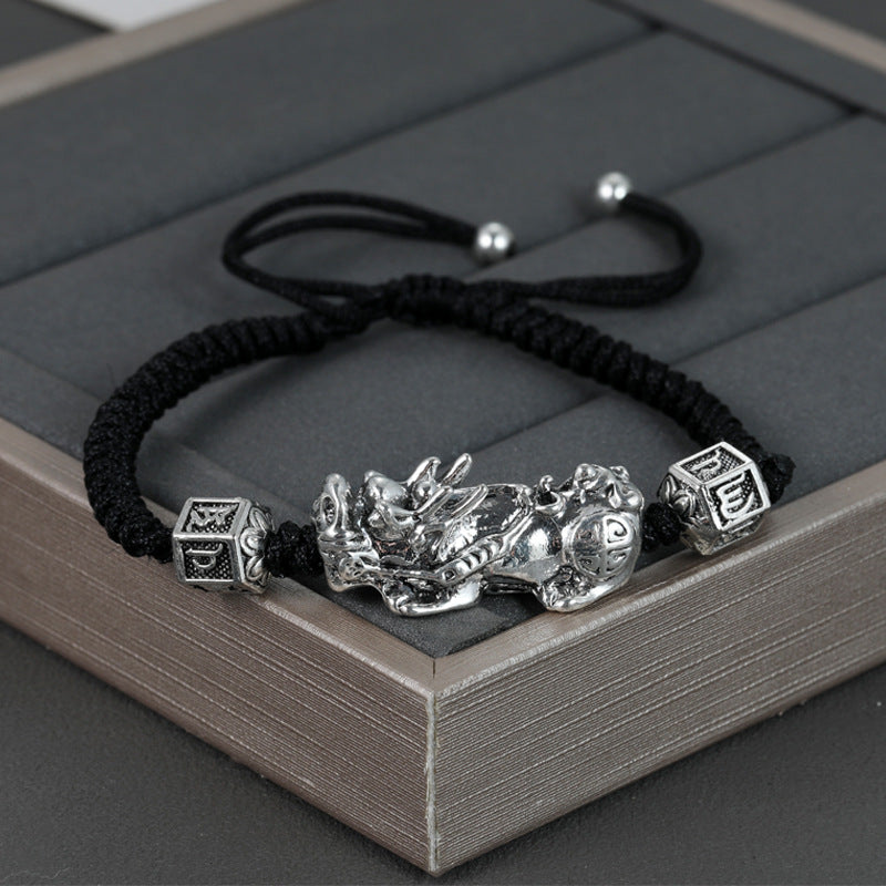 Six Words Mantra Feng Shui Pixiu Black String Bracelet