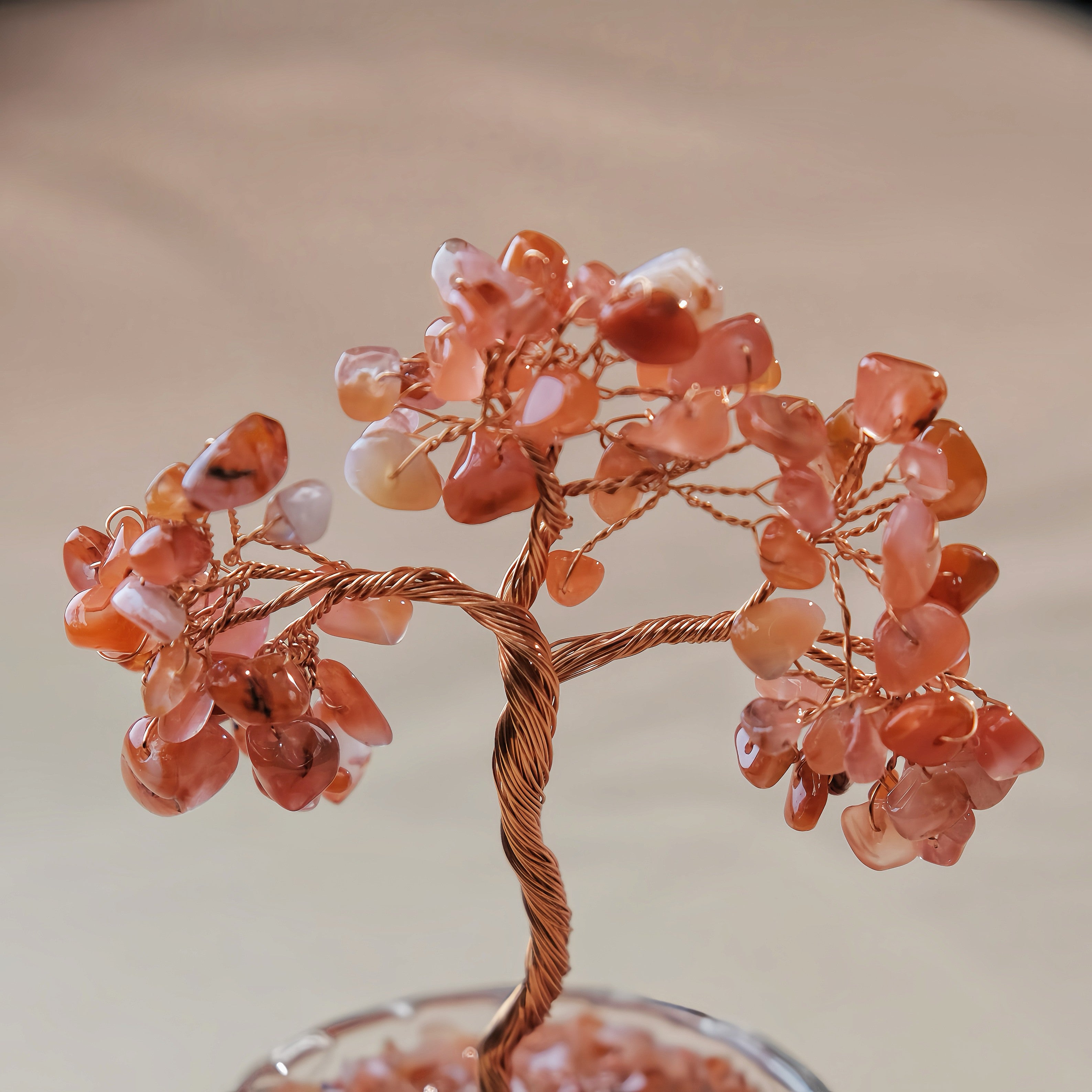Known for its ability to attract love, joy, and positivity, strawberry quartz brings a sense of emotional healing and balance. The vibrant crystal leaves, supported by delicate copper branches, create a powerful symbol of growth, connection, and inner strength.