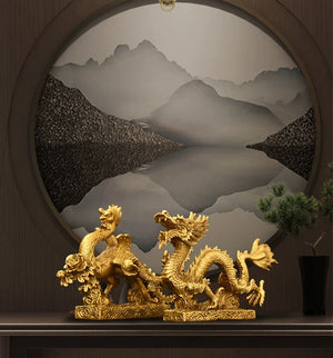 Crafted with intricate detail and finished in a radiant gold, this Dragon and Phoenix set is not just an ornament, but a timeless work of art that bestows the highest of blessings upon its owner.
