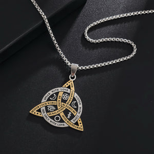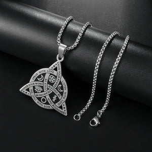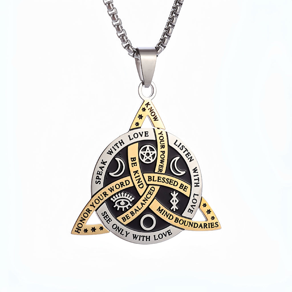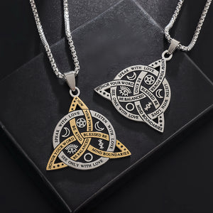 O Nó Celta da Trindade (também chamado de triquetra) é um símbolo antigo de ligação e equilíbrio infinitos. Os seus laços entrelaçados não têm princípio nem fim, representando a unidade, a continuidade e a forma como a mente, o coração e a ação se alimentam mutuamente. Usado como um pendente, atua como um lembrete para viver a partir desse lugar pleno — ajudando-o a cultivar um discurso mais gentil, uma perceção mais clara e uma escuta mais atenta no dia a dia. Não é uma cura mágica, mas um sinal significativo: toque-o, respire e traga as suas intenções de volta ao centro.