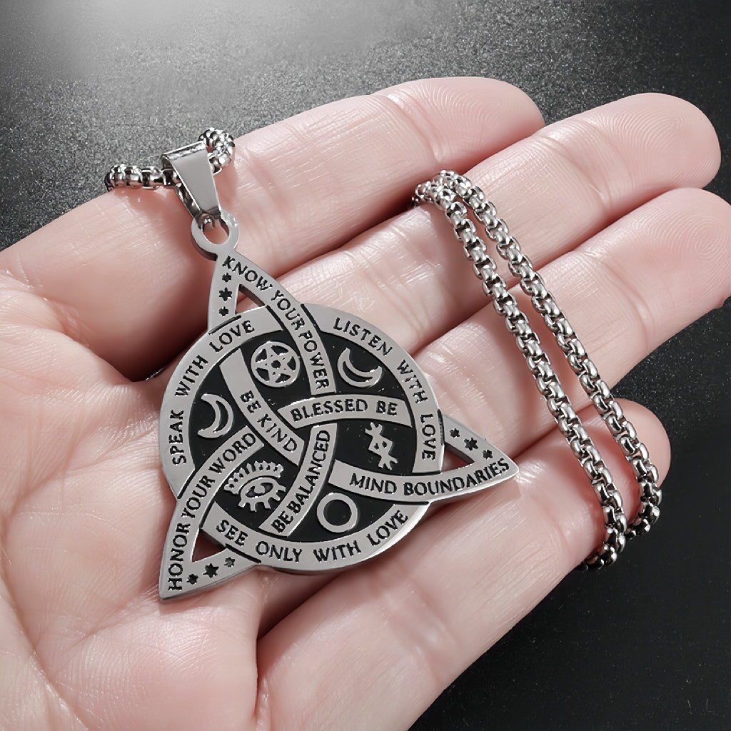 Um talismã moderno de ligação, compaixão e clareza — o nó de amor da Trindade Celta em aço de titânio durável.