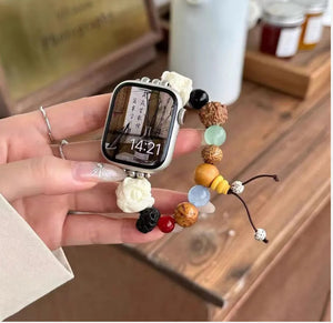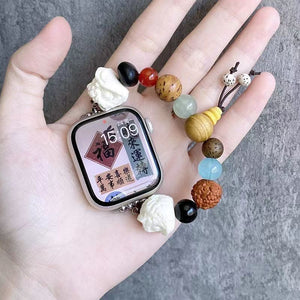 Pulseira para Apple Watch com 18 contas e pedra preciosa Bodhi de dezoito sementes