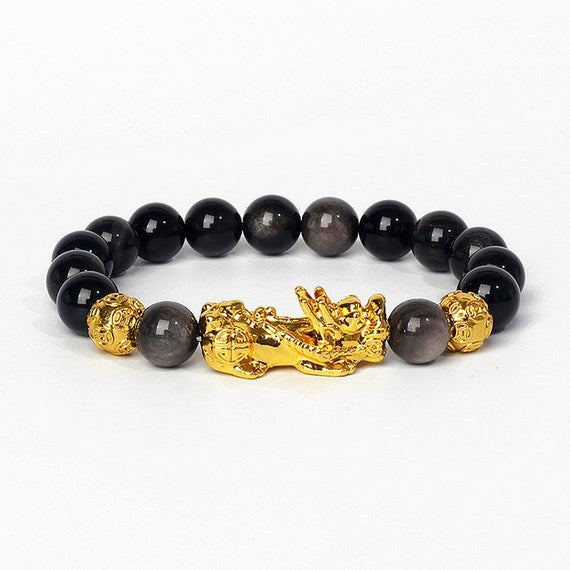 Pulseira de Cristal Gradiente Preto Escuro Pixiu Feng Shui