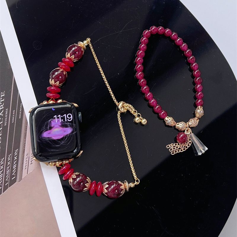 Pulseira de contas douradas carmesim claro e pulseira de contas para Apple Watch