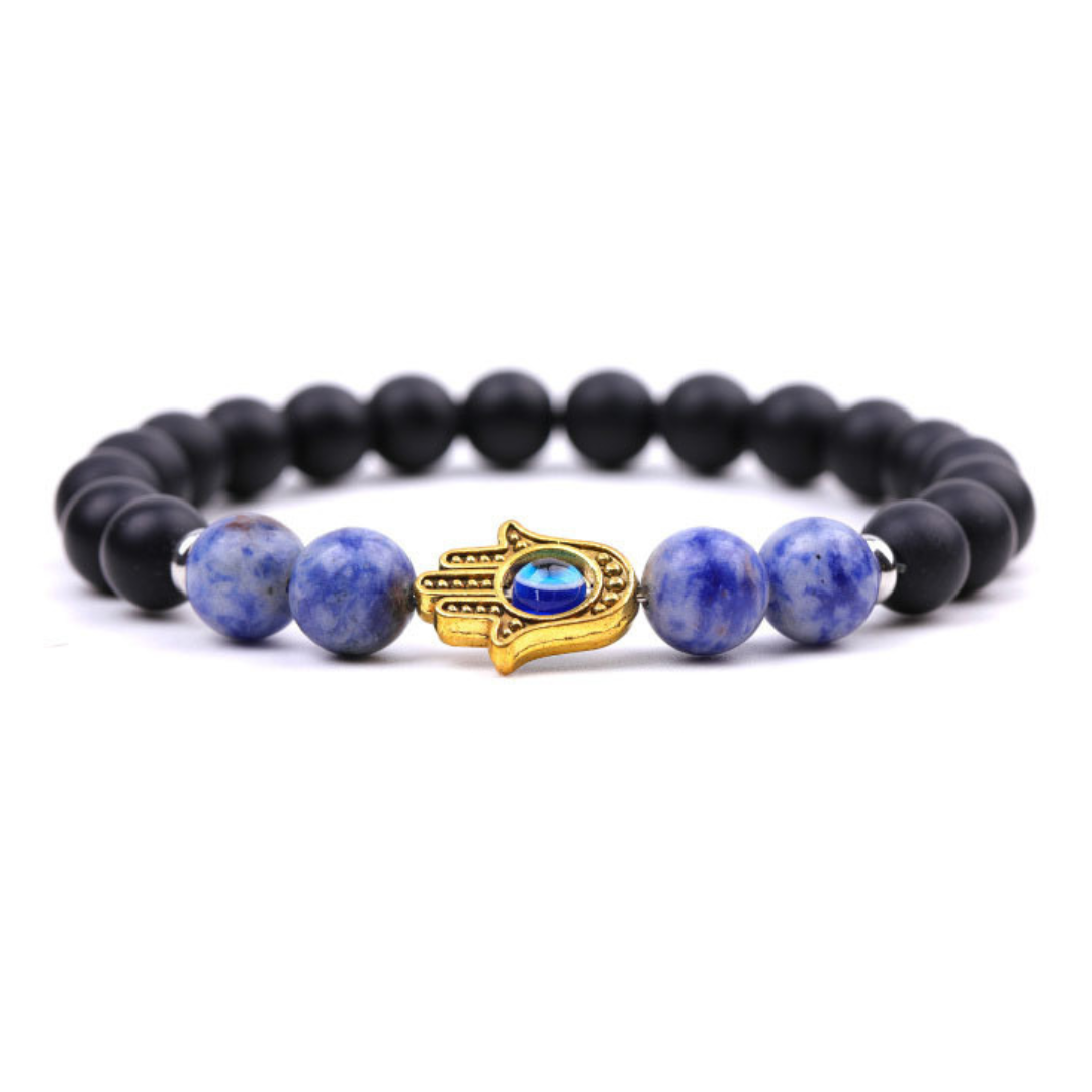 A serenidade oceânica encontra a vigilância mística. As contas de mármore com veios brancos evocam ondas espumosas, embalando um charme de olho grego. Os espaçadores dourados imitam a areia ensolarada, criando versatilidade de praia à noite. Mais do que uma jóia: é uma meditação vestível sobre a dupla natureza de Poseidon: mares calmos e uma guarda feroz.