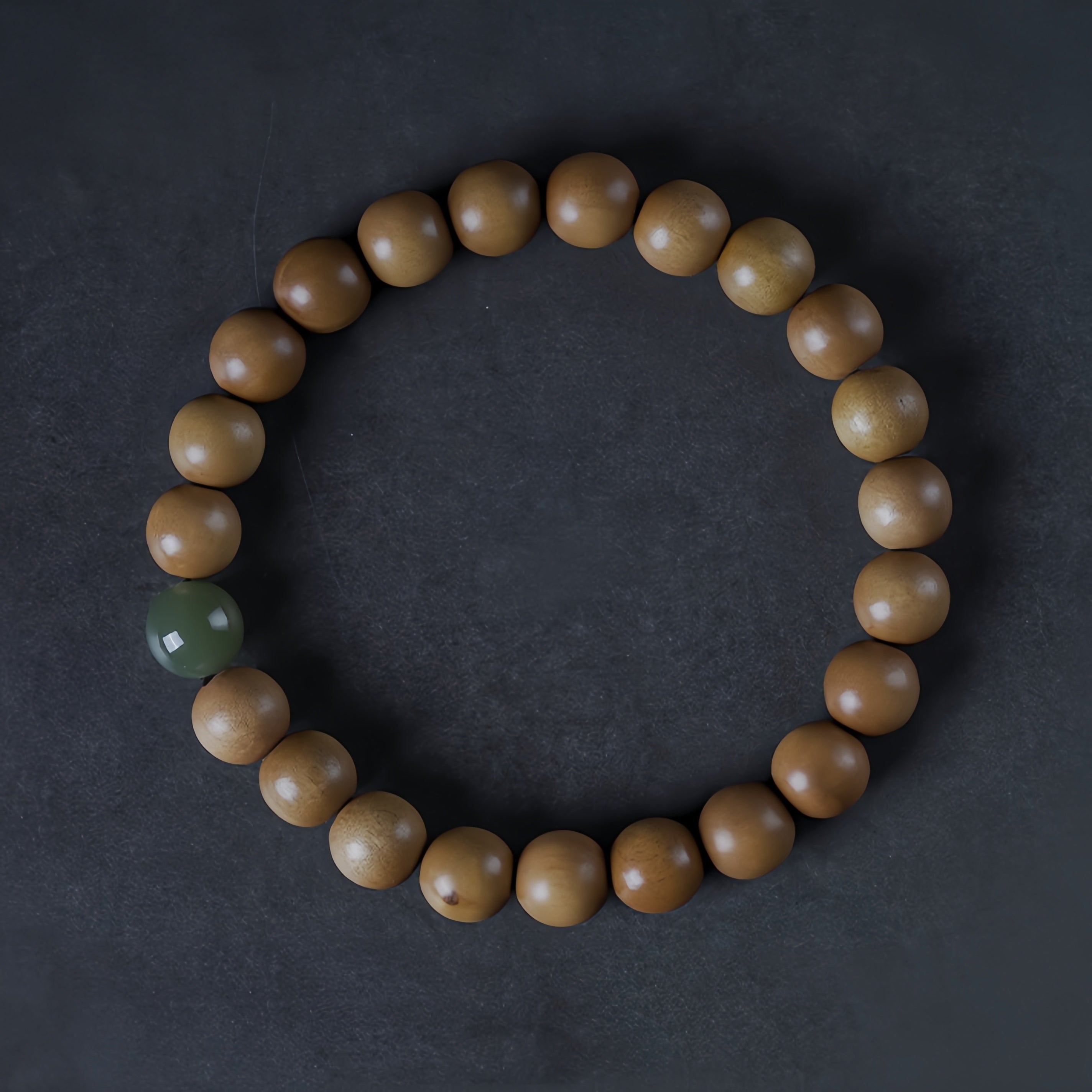 Pulseira de sândalo Mysore com jade Hetian e veias iluminadas pela lua