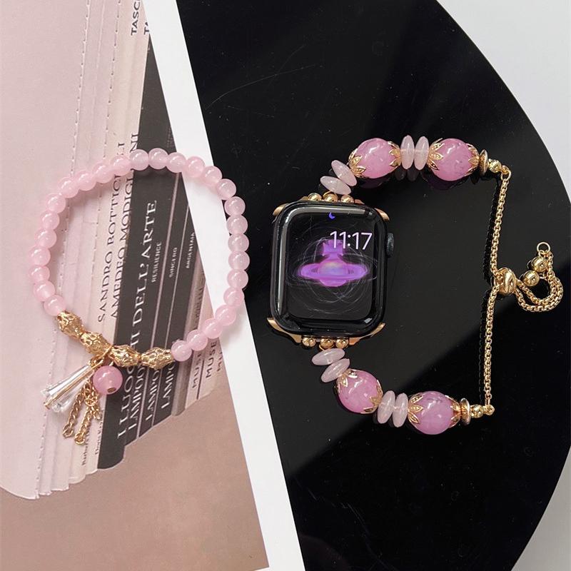 Pulseira de contas e pulseira de contas em ouro rosa para Apple Watch