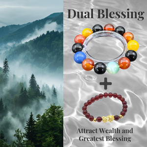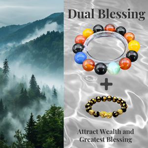 - Bênção Dupla : Maior Bênção (Pulseira de Ágata Multicolor) e Atrair Riqueza (Pulseira Pixiu)