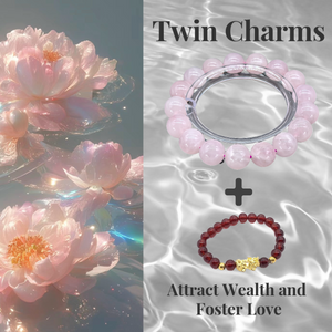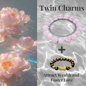 - Pingentes gémeos: Promover o amor (pulseira de quartzo rosa de Madagáscar) e atrair riqueza (pulseira Pixiu)