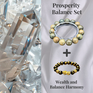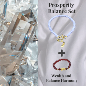 - Prosperidade e Equilíbrio : Equilíbrio e Harmonia (Pulseira Verawood/Pulseira de Zircónia Opaca Roxa) e Riqueza (Pulseira Pixiu)