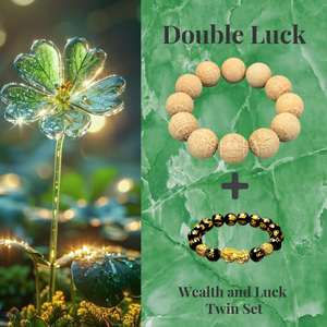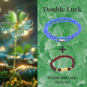 - Sorte Dupla : Sorte (Pulseira de Buda com Relevo de Madeira de Seis Caminhos/Pulseira Rondelles Microfacetada de Lápis-Lazúli) e Riqueza (Pulseira Pixiu)