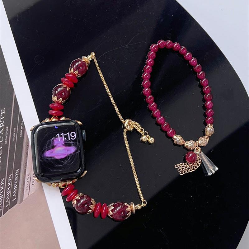 Pulseira de contas roxas e vermelhas e pulseira de contas para Apple Watch